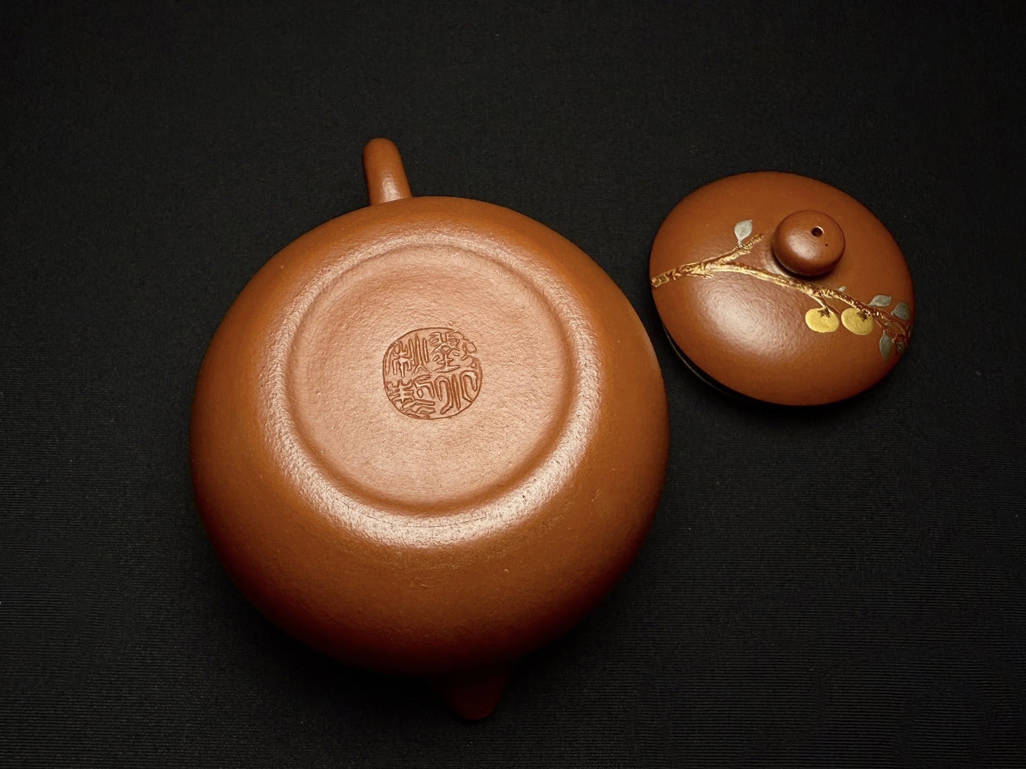 《柿成圓滿》|朱泥壺 壺蓋金繕修復