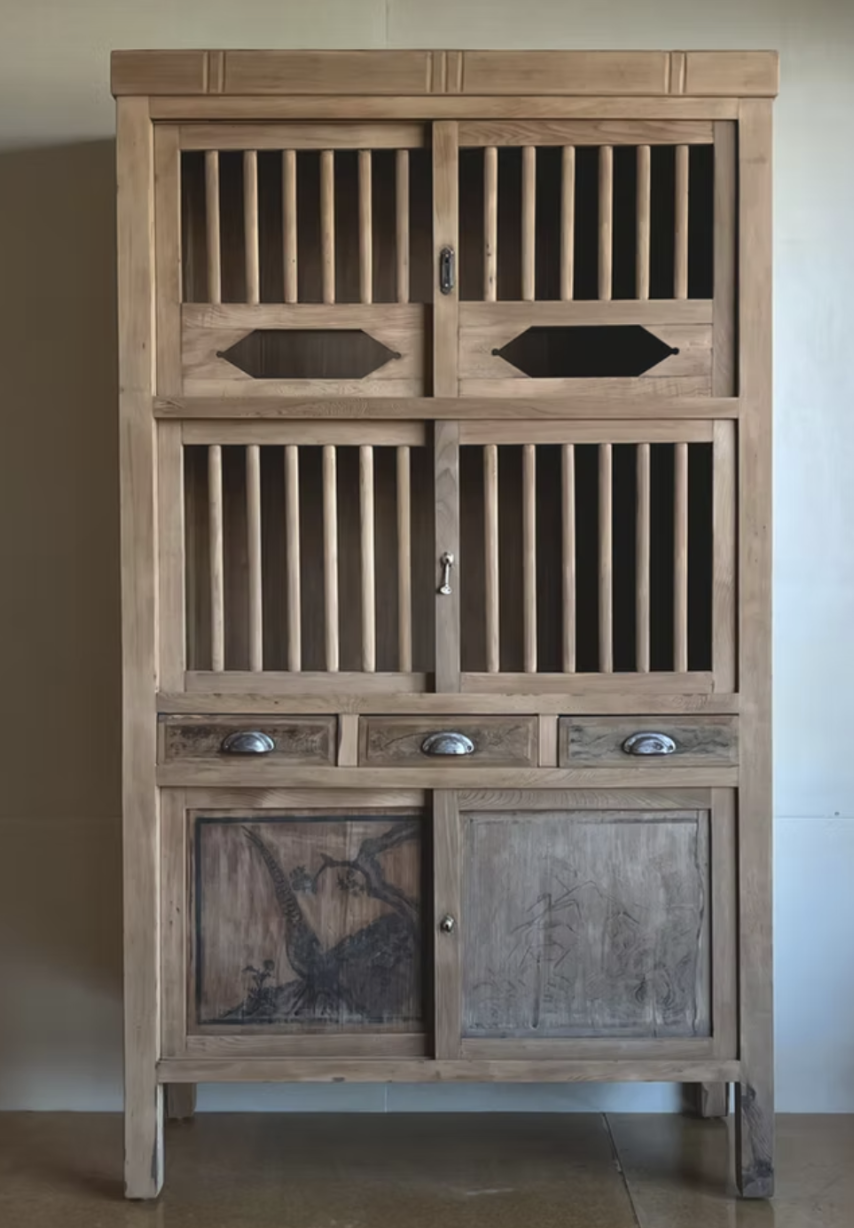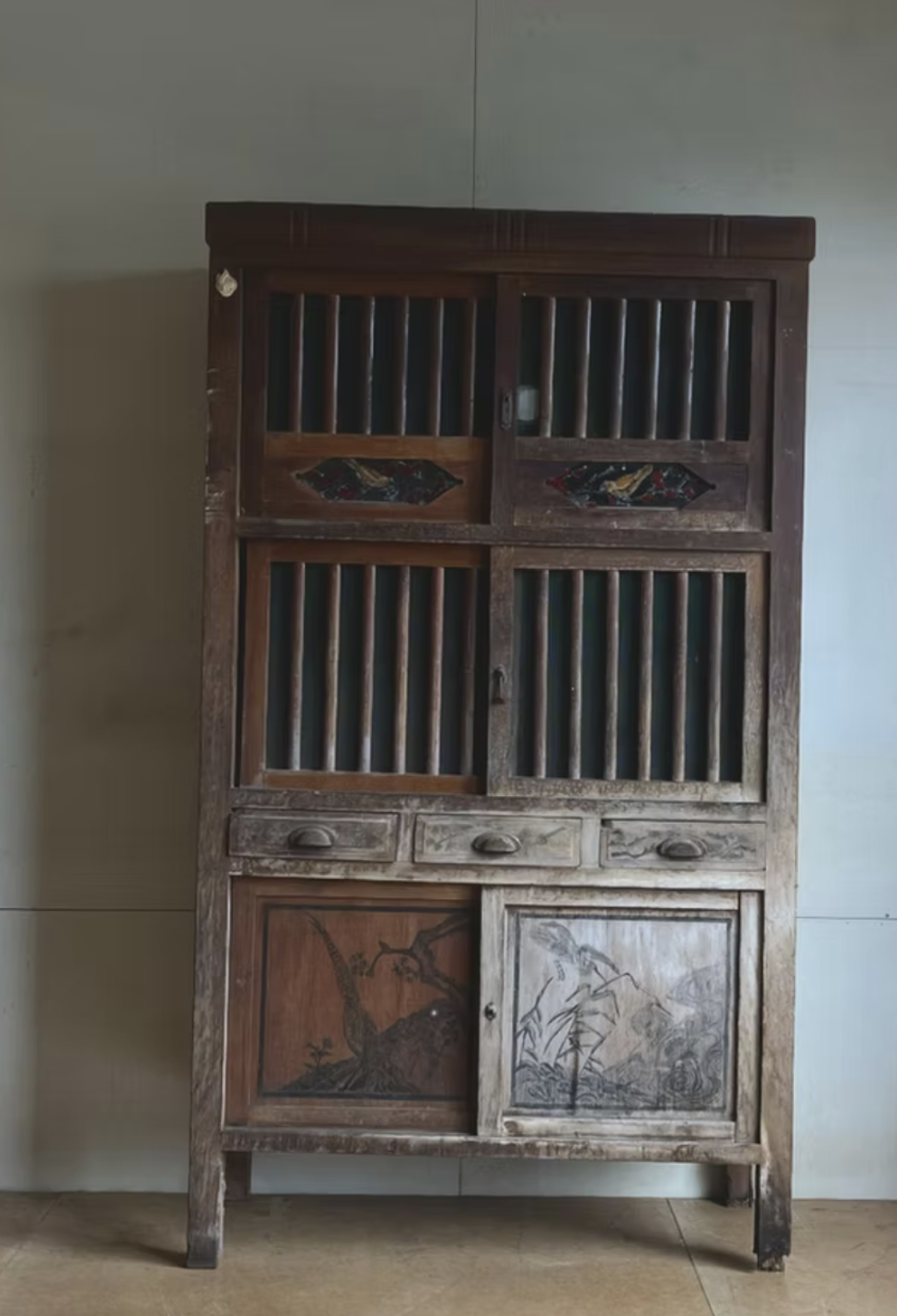 4.功能與外觀恢復: 針對功能性損壞,重做層板與抽屜底板。在外觀上,使用天然漆保護仍完整的墨畫,並去除受損部分以維持整體美感。