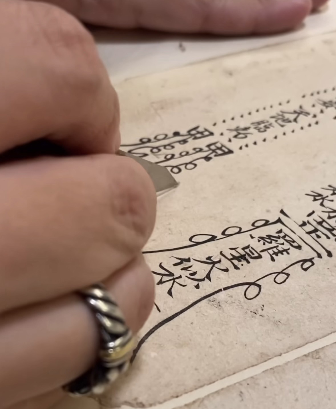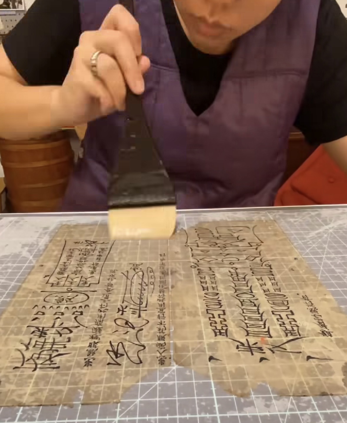 3. 修補與加固: 使用命紙(東方書畫襯紙)或楮皮紙(長纖維、強度高)修補破損。