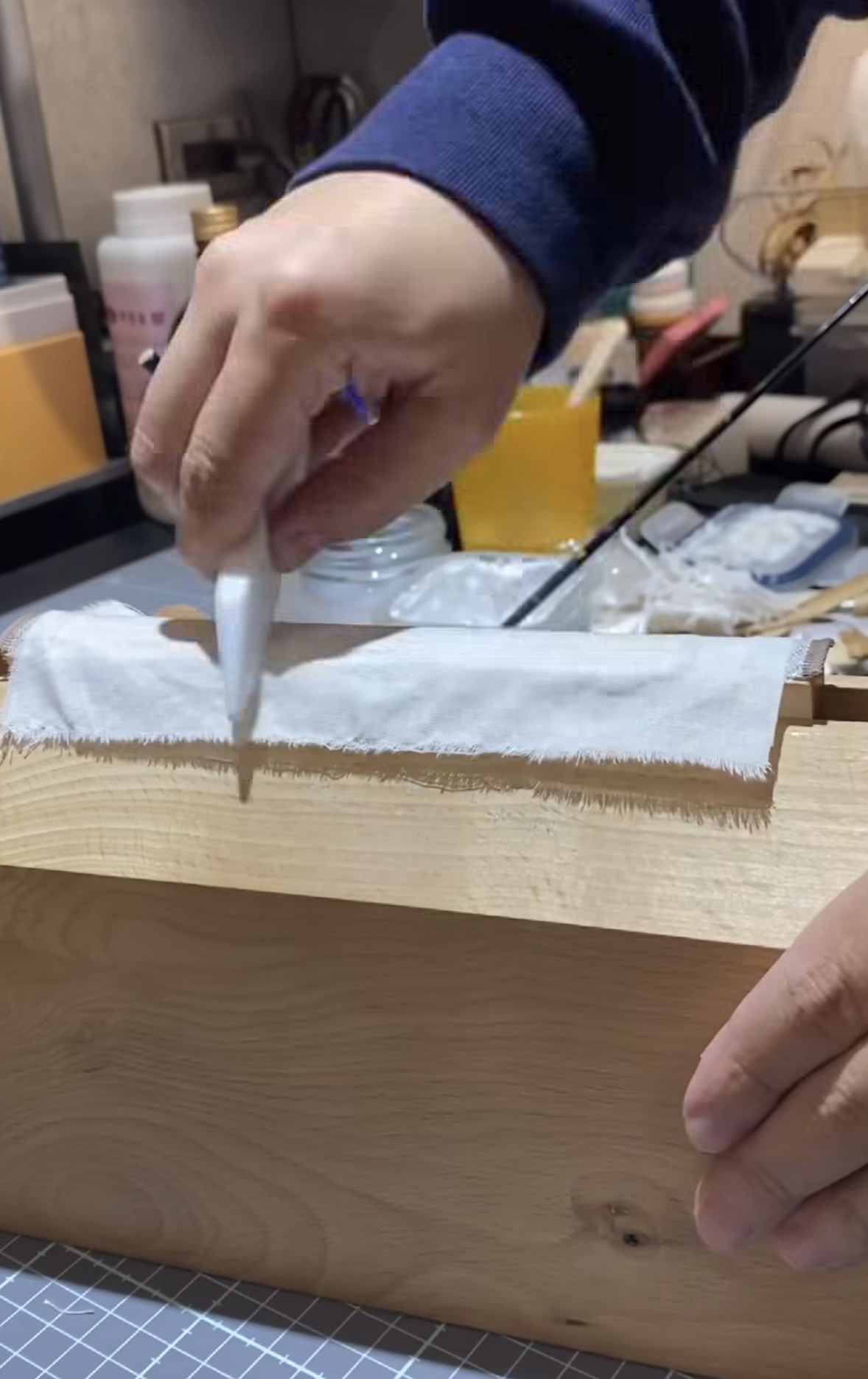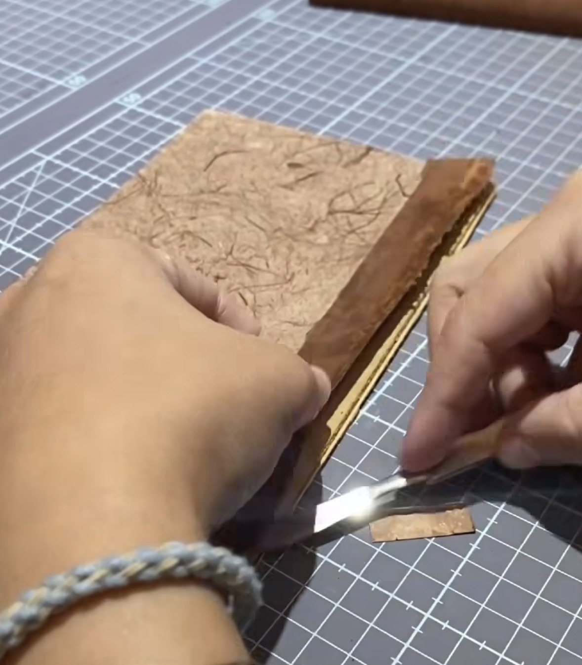 3.結構重建:移除舊的書脊布和背膠後,使用新的布料進行替換。