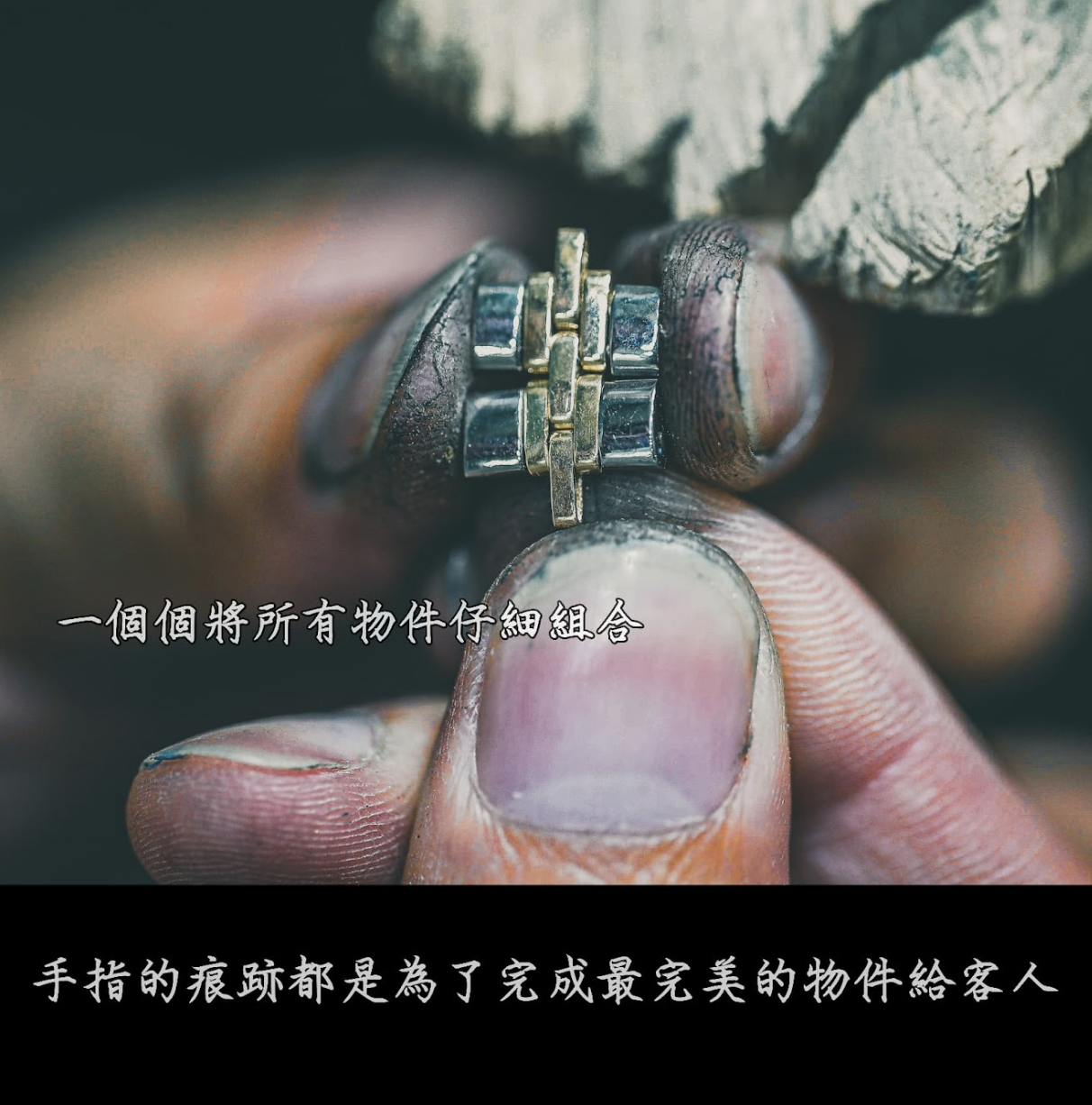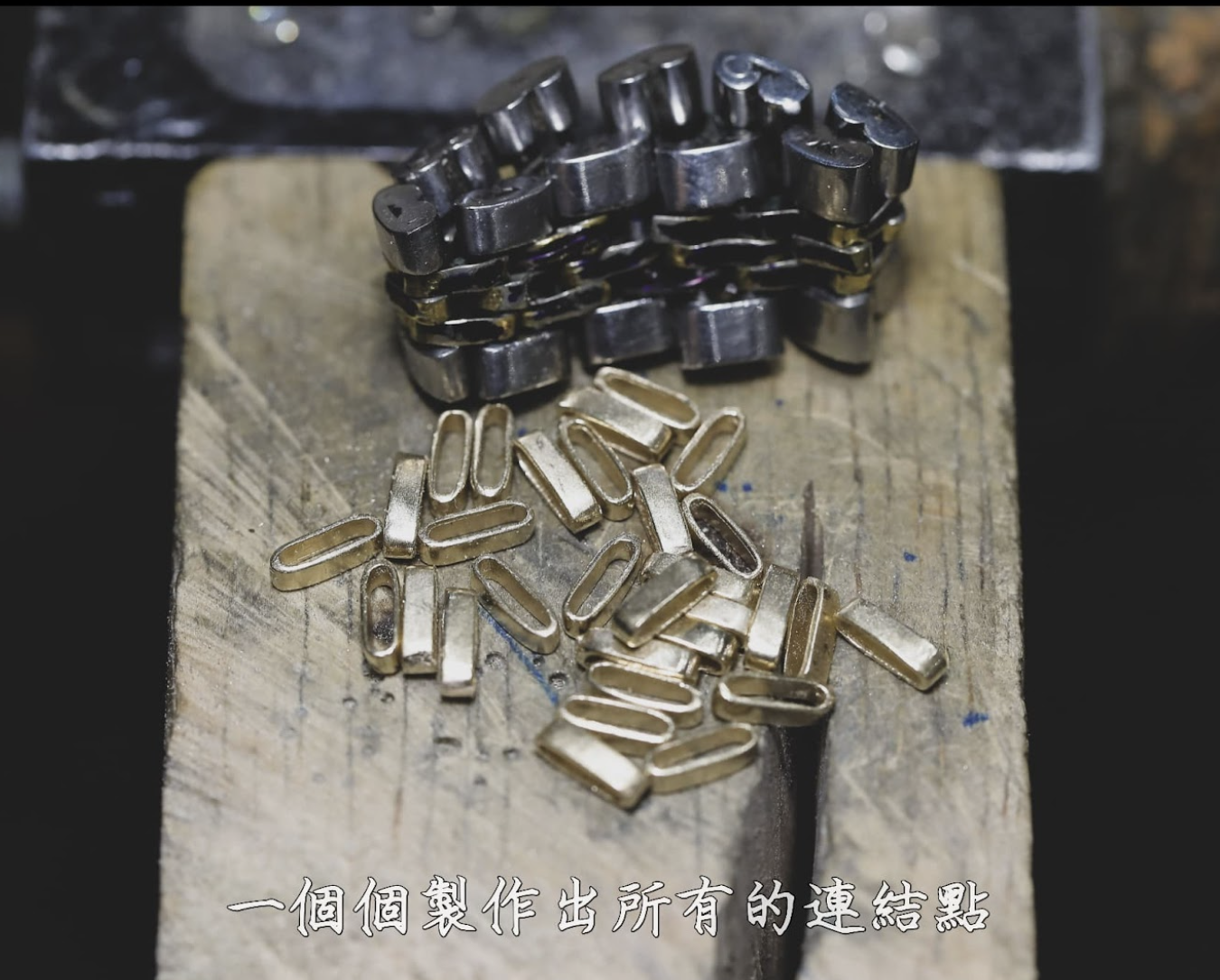 2.鑄造與修臺:他為戒指上約五十顆微小、複雜的結構件開模鑄造。鑄造完成後,每一顆元件都必須經過細緻的「修臺」(去除鑄造留下的水路、飛邊)與表面精修處理,以確保尺寸和形狀的完美精準。