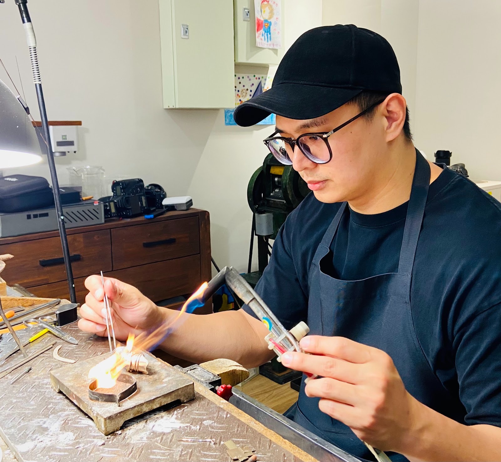 午後的工作室裡,一盞柔和的檯燈落在康琮侑的手上,他正低頭端詳桌上一隻等待修復的金工件。「修東西,不是為了賺錢,」他笑著說,「是我覺得一定要把它非修好不可。」
