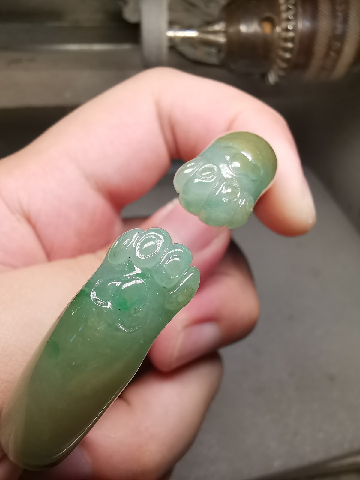 「每一個人在選一個型體的時候,可能是對這個型體有所感觸,他才會選這一個。因為我們常常都說玉就是會找有緣人,會自己找主人的意思,玉石是溫潤的有生命的」這次貓爪手鐲的改作,就是一個很典型的例子。客人家裡養貓,在市面上看到貓爪造型的玉件,因為喜歡而帶著圖片來問他:「老師,這樣可以做嗎?」 於是,原本帶裂痕的玉鐲,在切割、雕刻、拋光後,斷裂處被轉化成造型的一部分,裂痕被「透明化」,不再是傷口,而是成為一只帶有貓爪符號的玉牌。最終,這件作品不再是一個破碎的紀念品,而是一塊具有完整新生命、承載著主人對愛貓情有獨鍾的信物。而對蔡汶諺而言,這就是玉雕修復最迷人的地方:不是單純把東西「修好」,而是讓它以另一種樣貌,重新陪在主人身邊。