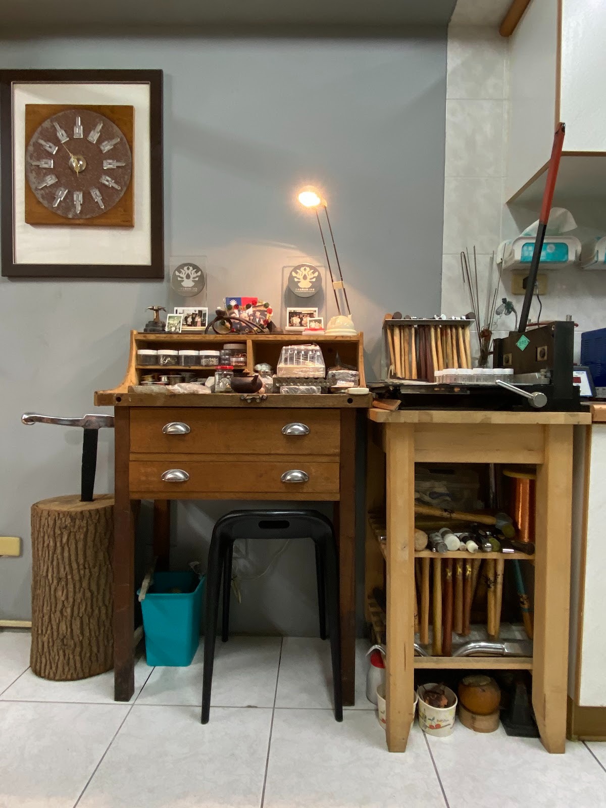 楊炘彪老師與工藝的淵源,不僅源自家族的金工銀樓產業,更在於他對天然漆藝的熱愛與鑽研。1996年,他第一次接觸天然漆,便被這種傳統材質的內斂光澤吸引,決定投入研究。大學時期,他師承自日本金澤工藝美術大學研究所畢業的老師,正式展開長達29年的漆藝創作與修復生涯。