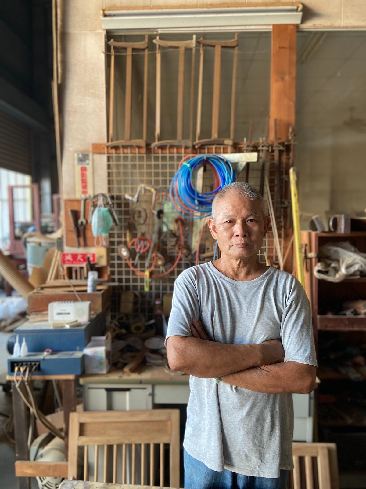 對蔡家璋師傅而言,木頭物件的修復有著清晰的界線——「修護」是為文物恢復原貌,「修復」則是讓老件重新能夠使用。他選擇的永遠是後者。這與多用於文物注重恢復原貌以供展示保存的「修護」有本質上的不同。作為傳統實木家具「內場」出身的職人,蔡師傅擁有精通榫卯結構的深厚功底,能夠看懂並掌握老件的原始結構與功法。他強調,修復不是簡單的打釘或黏合,而是要讓老件恢復其原有功法,將結構穩固地重組。這種「回到可用狀態」的務實精神,讓每一件經過他手的家具,都能穩穩地回到生活中,繼續承載屬於家庭的故事。