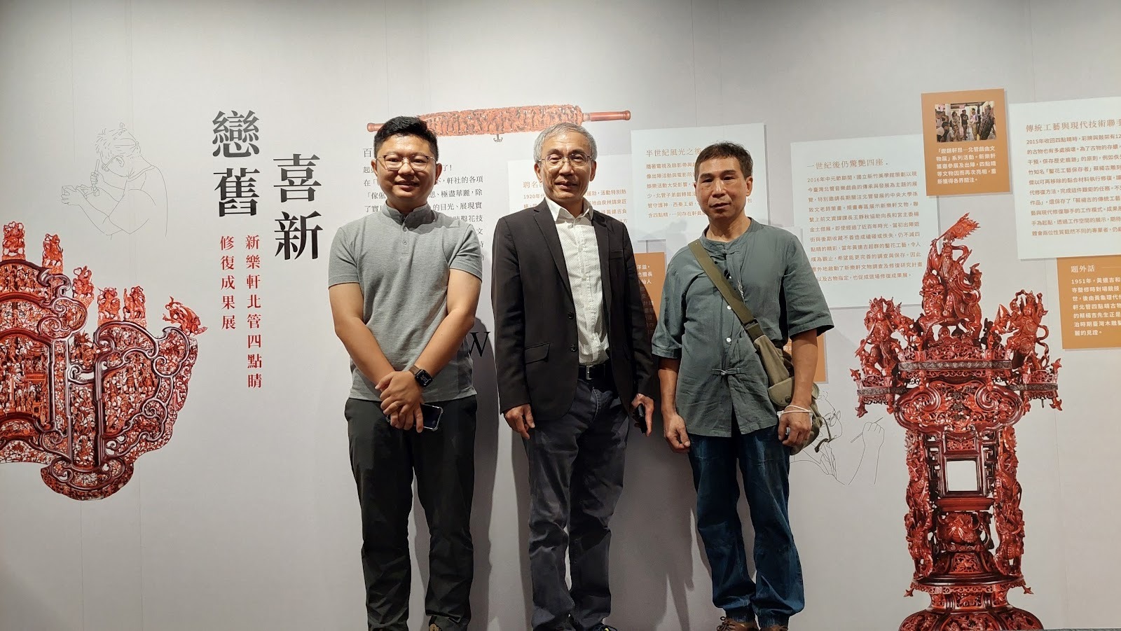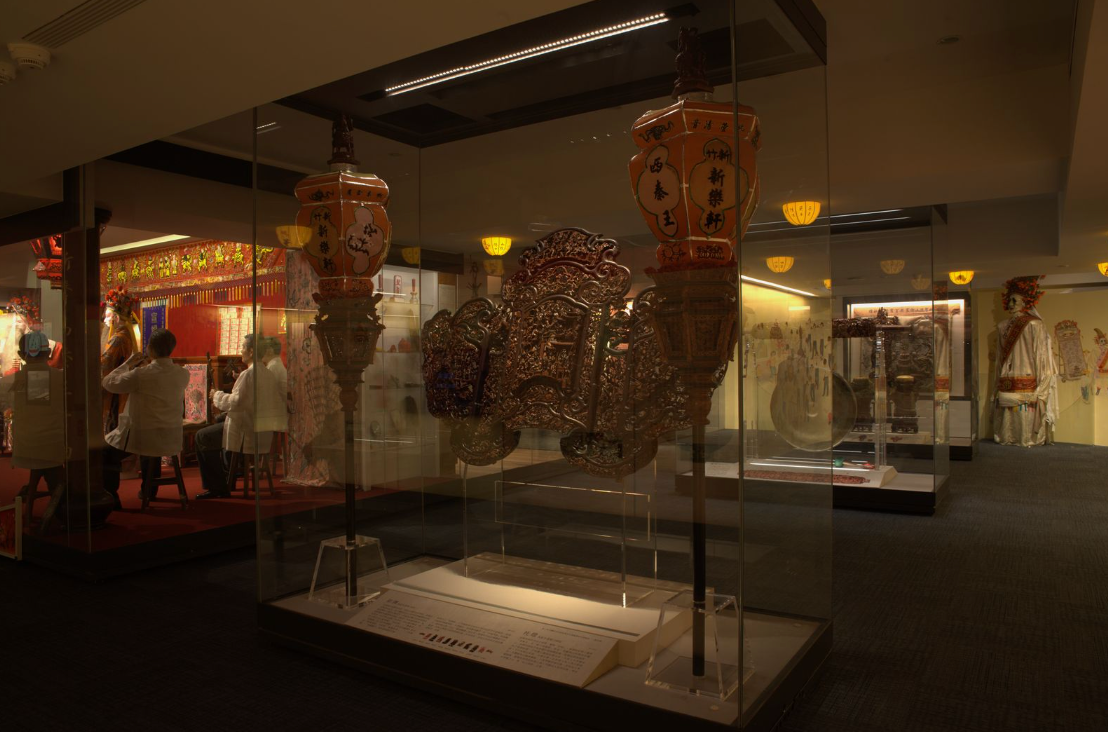 長和宮三樓的文物館裡,光線靜靜落在一組被時間磨蝕的木雕傢俬上。彩牌的邊角被雨水侵蝕得發白,托燈底部留下蟲蛀的小孔,鼓架的木紋彎曲如老人的掌紋。這組「北管四點睛」——軒社出陣時的象徵物件——正準備迎接一場結合傳統木藝與科學修復的合作旅程。