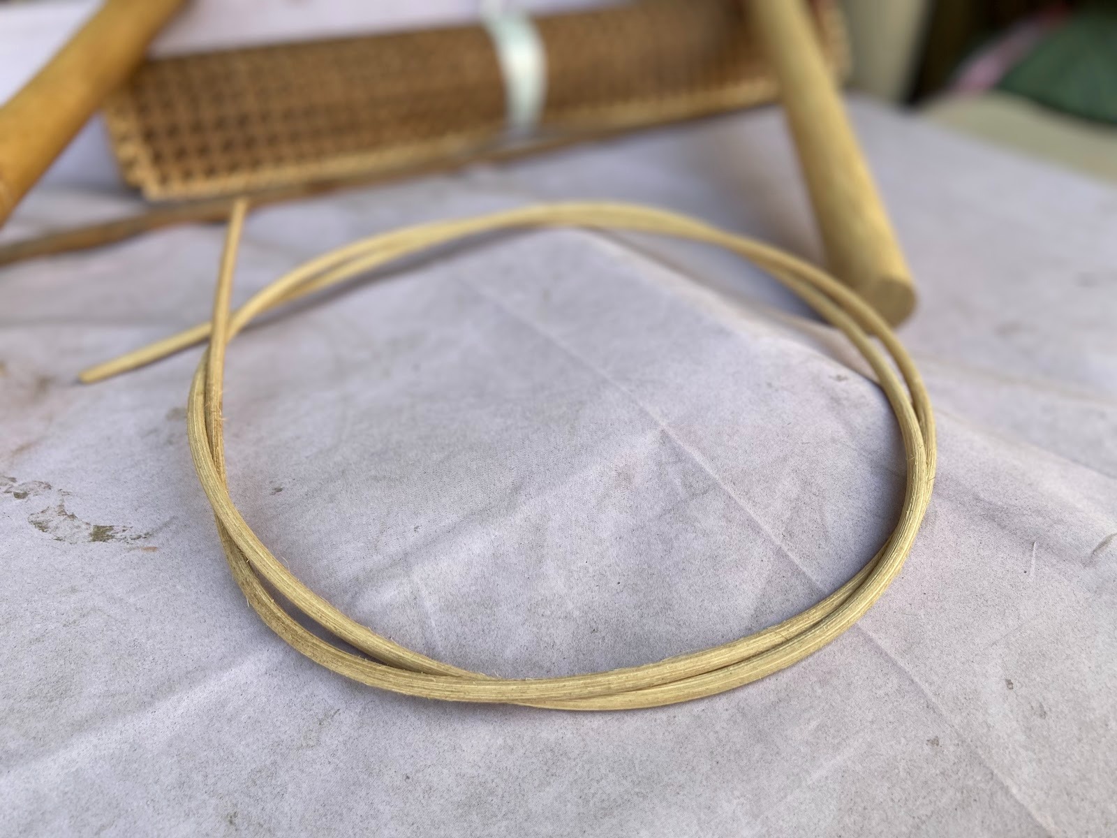 - 拆卸進行材料準備: 首先必須進行拆卸,將破損的椅背割掉,並將椅墊的螺絲拆掉。接著,歐師傅會選用韌性較好的藤皮作為材料,準備進行藤皮的泡水軟化。