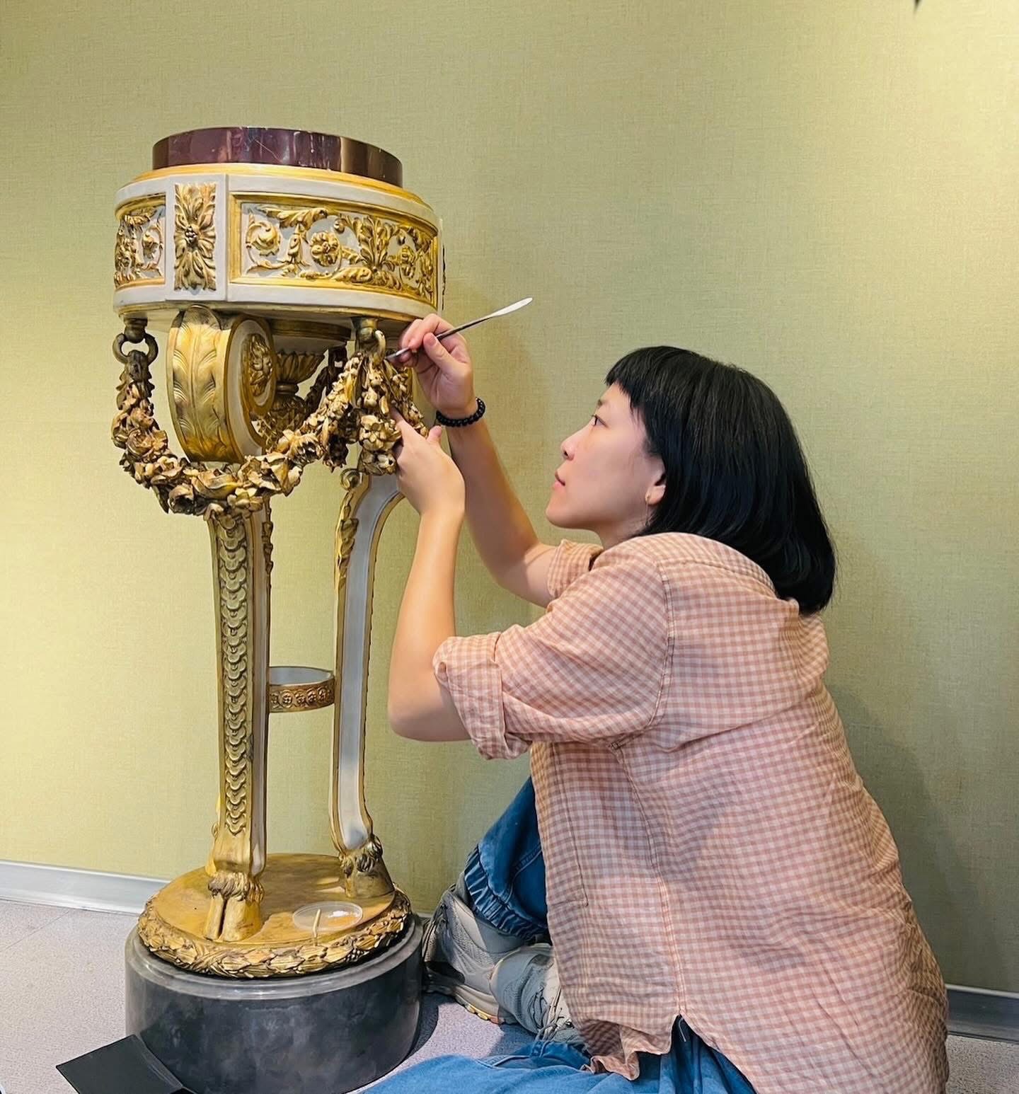 - 金箔局部修補:補貼局部脫落的金箔,在恢復金箔光彩的同時,保留了桌面歷史痕跡與歲月斑駁的質感。